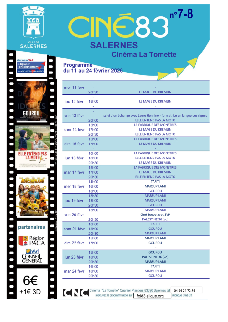 Cinéma « La Tomette » 🎬 du 11 au 24 février 2026