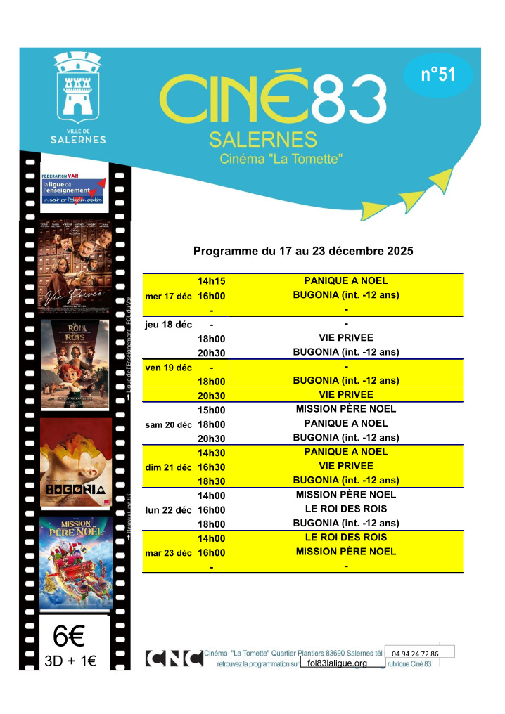 Cinéma « La Tomette » 🎬 du 17 au 23 décembre 202516 décembre 2025/dans Vivre à Salernes/par Mairie de Salernes